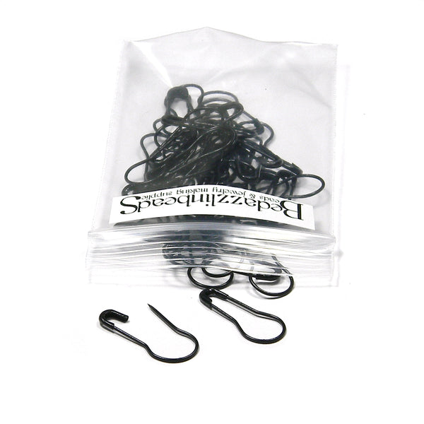 Uniquely shaped safety pins from Bedazzlinbeads. Just like normal safety pins but with the beauty of an elegant bulb. Use as bails on necklaces or as brooches! Also very popular as stitch markers. These measure approximately 22mm (7/8 inch) top to bottom and 10mm (3/8 inch) wide at the widest point. The wire itself is about 0.75mm thick.