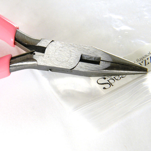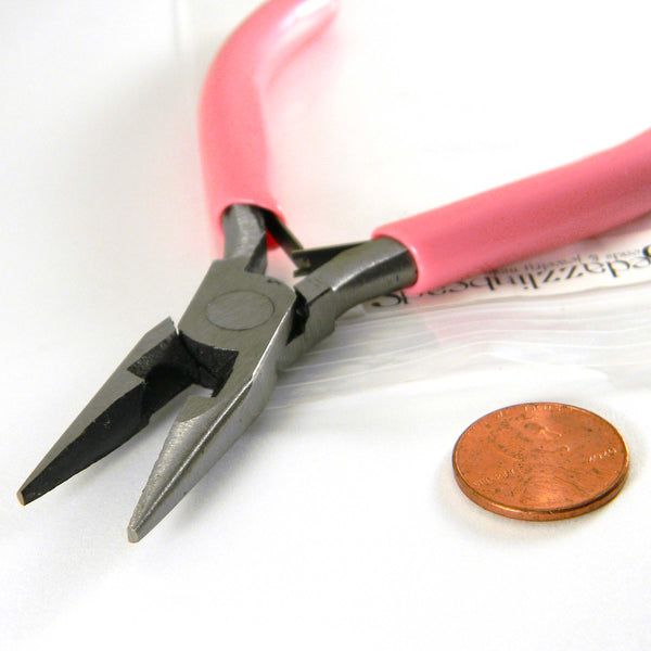 Chain-nose pliers are great for many jewelry making needs; wirework, chainmaille, stabilizing components, closing prongs, opening and closing jumprings, flattening crimps 7 ribbon crimps and so much more! These beautiful carbon steel, pink handled, chain nose pliers are just over 4 3/4 inch long. They have return spring handles for easier long-term, repetitive use.