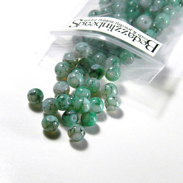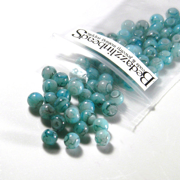 These round glass beads are painted a beautiful marbled pattern then baked. They measure 6mm in diameter and the hole is slightly bigger than 1mm.