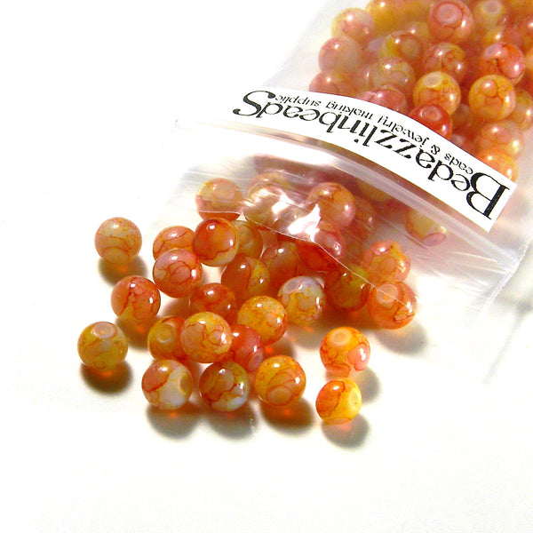 Marble Blended Tie Dye 6mm Round Glass Beads With 1mm Hole~Sold Individually
